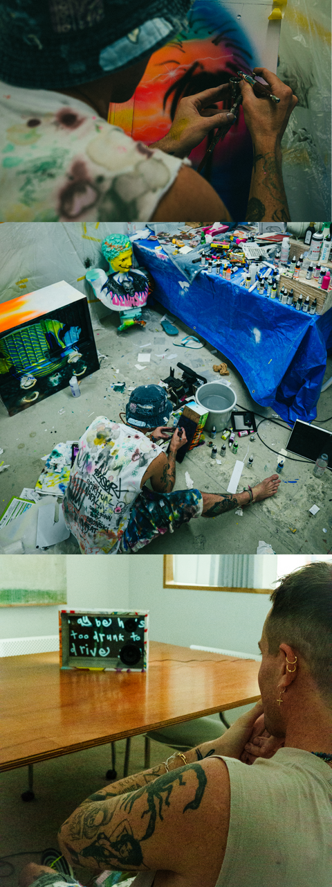 이 작품은 2023년 여름에 제작되었습니다. 격리 기간을 거쳐 고향으로 돌아가 뿌리와 관계를 재연결하는 시간을 가졌습니다. 시간이 흐르면서 많은 것이 변했다는 것을 깨달았습니다. 제가 알고 있던 아이들은 청소년으로 성장했고, 각각이 현재 어떤 것에 관심을 가지고 있는지 배우는 과정에 있었습니다. 그들은 모두 독특하고 개성 넘치는 존재들이었습니다. 저는 항상 청소년의 세계관과 관점에 미치는 서브컬처의 영향에 대해 깊이 관심을 가져왔습니다. 당시 제가 열정적으로 추구했고 삶에 반영했던 것들을 되돌아보며, 그 요소들이 시간を超월해 여전히 제 안에 울려 퍼지고 있음을 그들과 공유했습니다. 이 작품은 마치 아무도 없는 시골 집에 있는 듯한 곳에서 제작되었습니다. 수주간 기온이 40도 가까이 유지되었고, 다음 행선지가 명확하지 않았기 때문에, 자연스럽게 아이들과 언니와 함께 보낸 시간을 통해 이 작품과 교류하게 되었습니다. 지금 돌아보면 이 작품은 ‘청춘’, ‘청소년기의 시선과 아이디어’, ‘성장’, ‘서브컬처’, 그리고 제 인생의 다양한 전환점에서 존재해온 ‘가족'과 '사람들’, ‘음악’, '시각적 이미지'에 대한 경의를 표하는 일러스트레이션의 콜라주입니다. 저는 다양한 기술, 스타일, 매체를 사용해 여러 연령과 배경을 가진 사람들이 만든 것처럼 보이는 ‘극단적인’ 이미지를 만드는 것을 즐깁니다. 그러나 실제로는 모든 것이 단 한 사람, 즉 저에 의해 만들어졌습니다. 이 작품은 제 인생에서 쌓아온 관심사와 스타일을 제 나름의 독특한 방식으로 시각적으로 정리하고 표현하려는 시도입니다.
